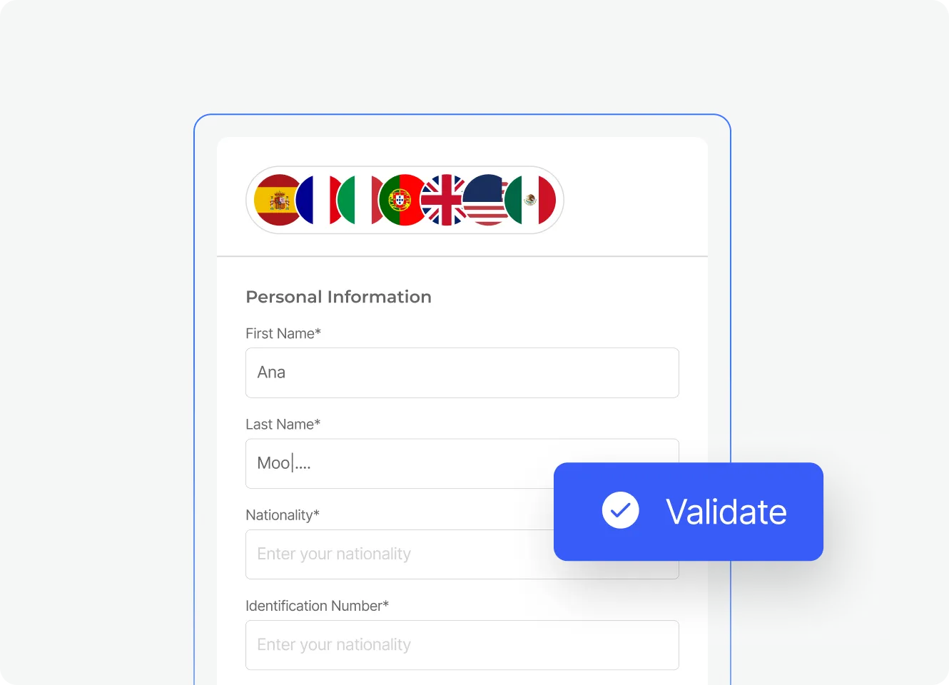 Check-in forms automatically adapt to the legal requirements of each country and region. Only the fields mandated by local regulations are shown—no unnecessary data collection, no risk of rejection by platforms.