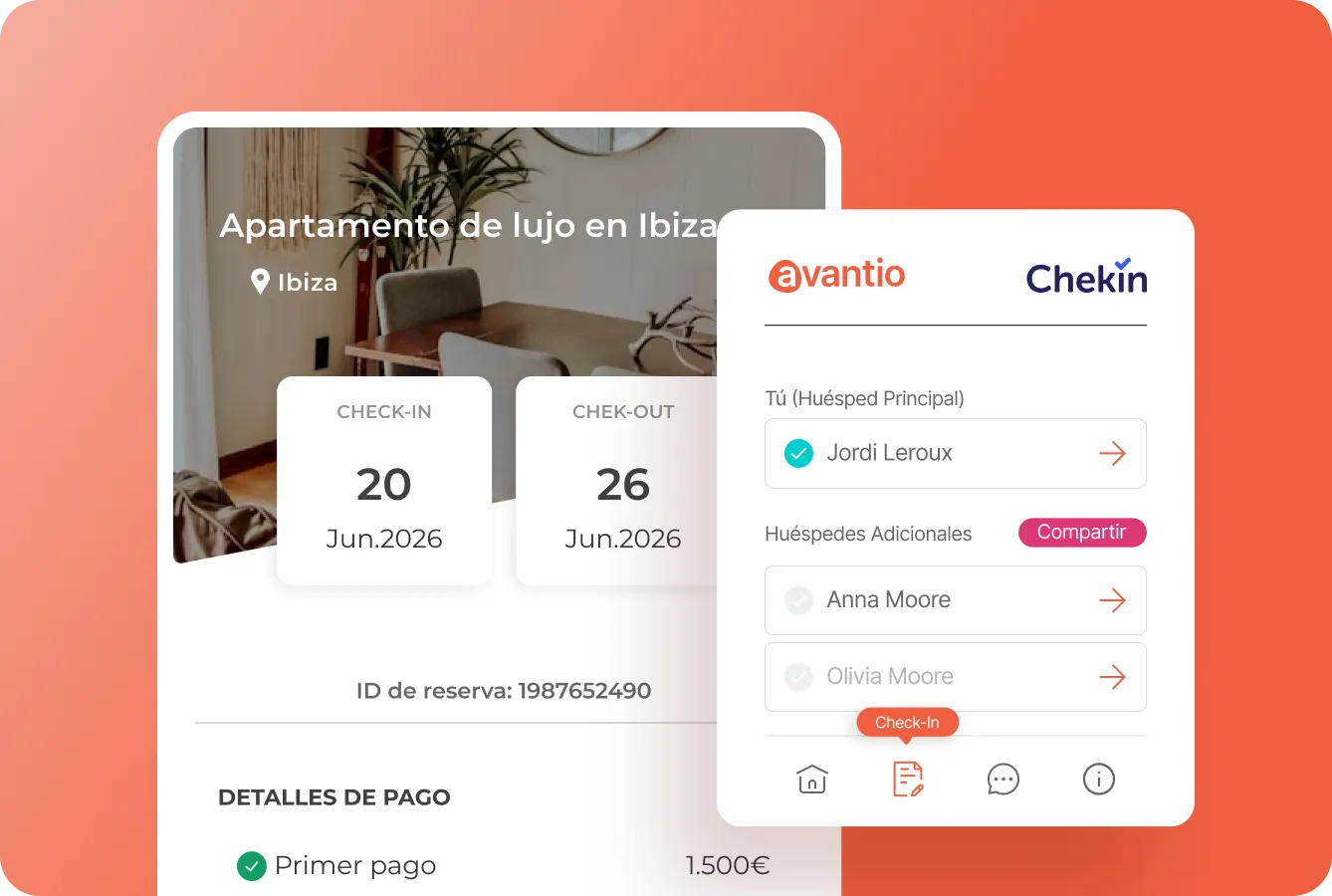 Al confirmarse una reserva, el huésped recibe automáticamente una invitación para acceder a su área personalizada y completar el proceso de check-in.