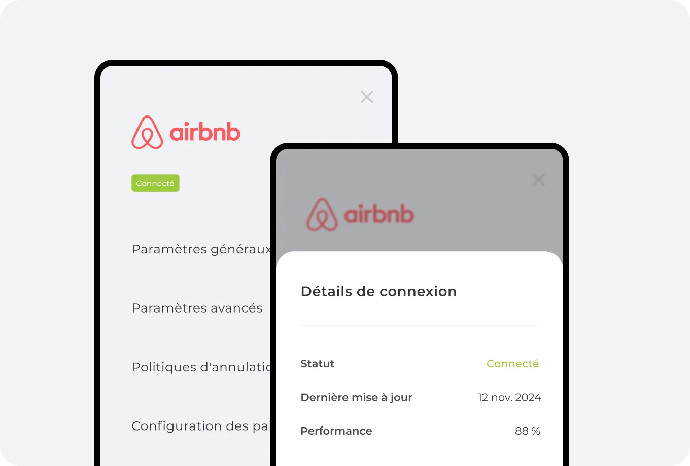 Mises à jour automatiques des tarifs, disponibilités, réservations et contenus entre Airbnb et Avantio.