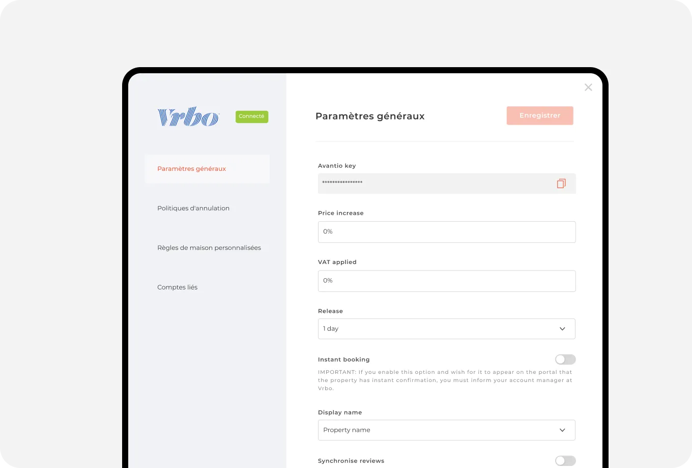 Fonctionnalités de Vrbo via le Channel Manager d’Avantio