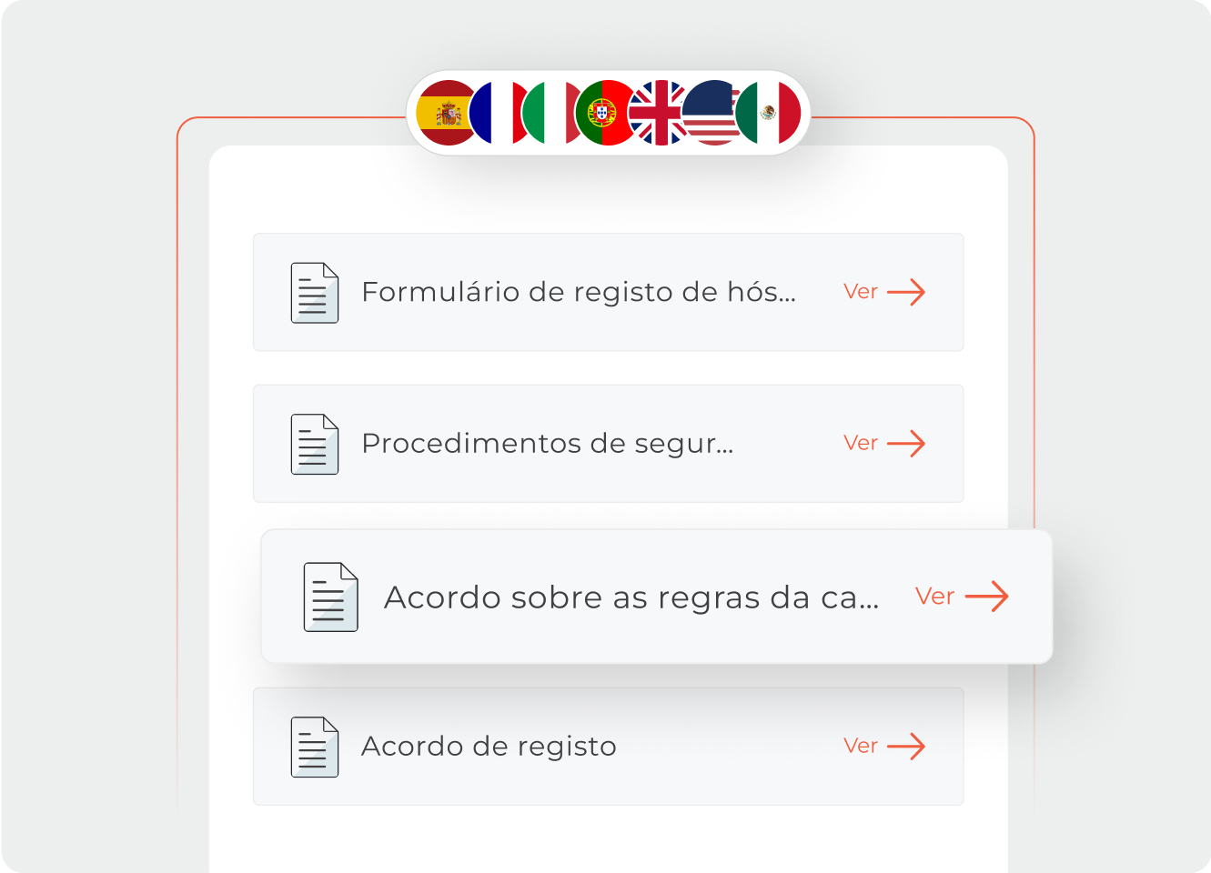 Gere automaticamente contratos, documentação de registo local e formulários obrigatórios para a polícia com os dados dos hóspedes. Adaptado ao seu mercado.