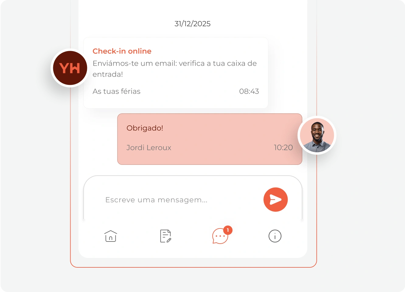 Mantenha a conversa ativa — automaticamente. A nossa ferramenta de chat integrada permite-lhe trocar mensagens com os hóspedes antes da chegada, durante a estadia e mesmo após o check-out.