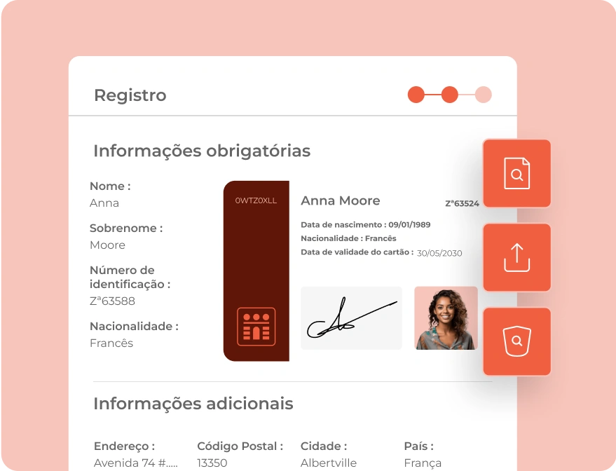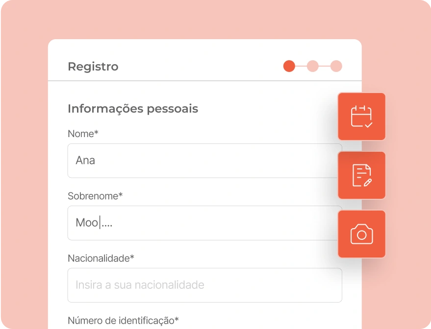 Os hóspedes fazem upload seguro da sua identificação e completam a verificação com selfie diretamente na sua área de hóspedes personalizada. Sem necessidade de aplicações adicionais.